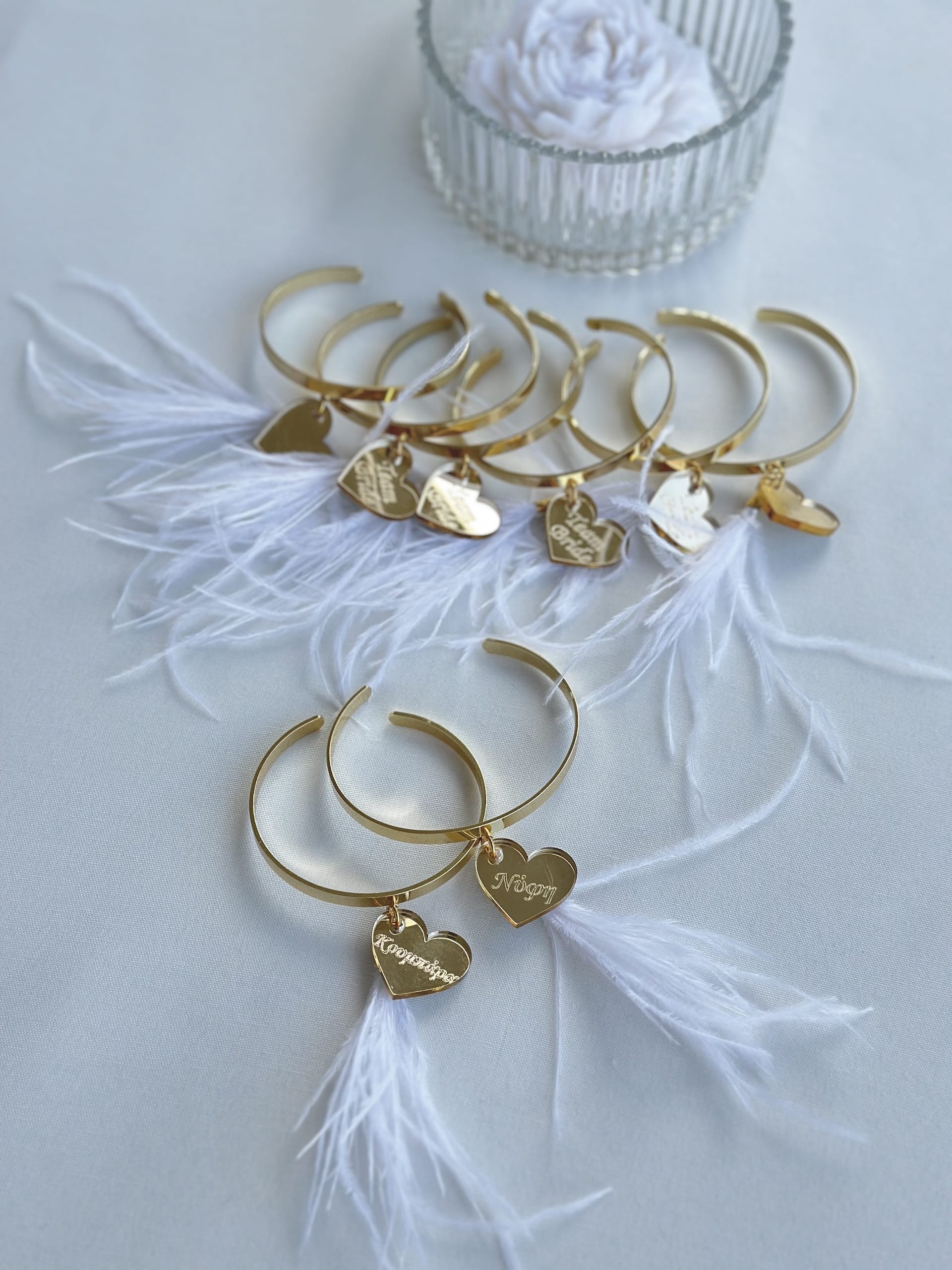 Χειροπέδα χρυσή με καρδιά plexiglass Team bride ή ότι θέλετε να γράψετε στο στοιχείο της καρδιάς.