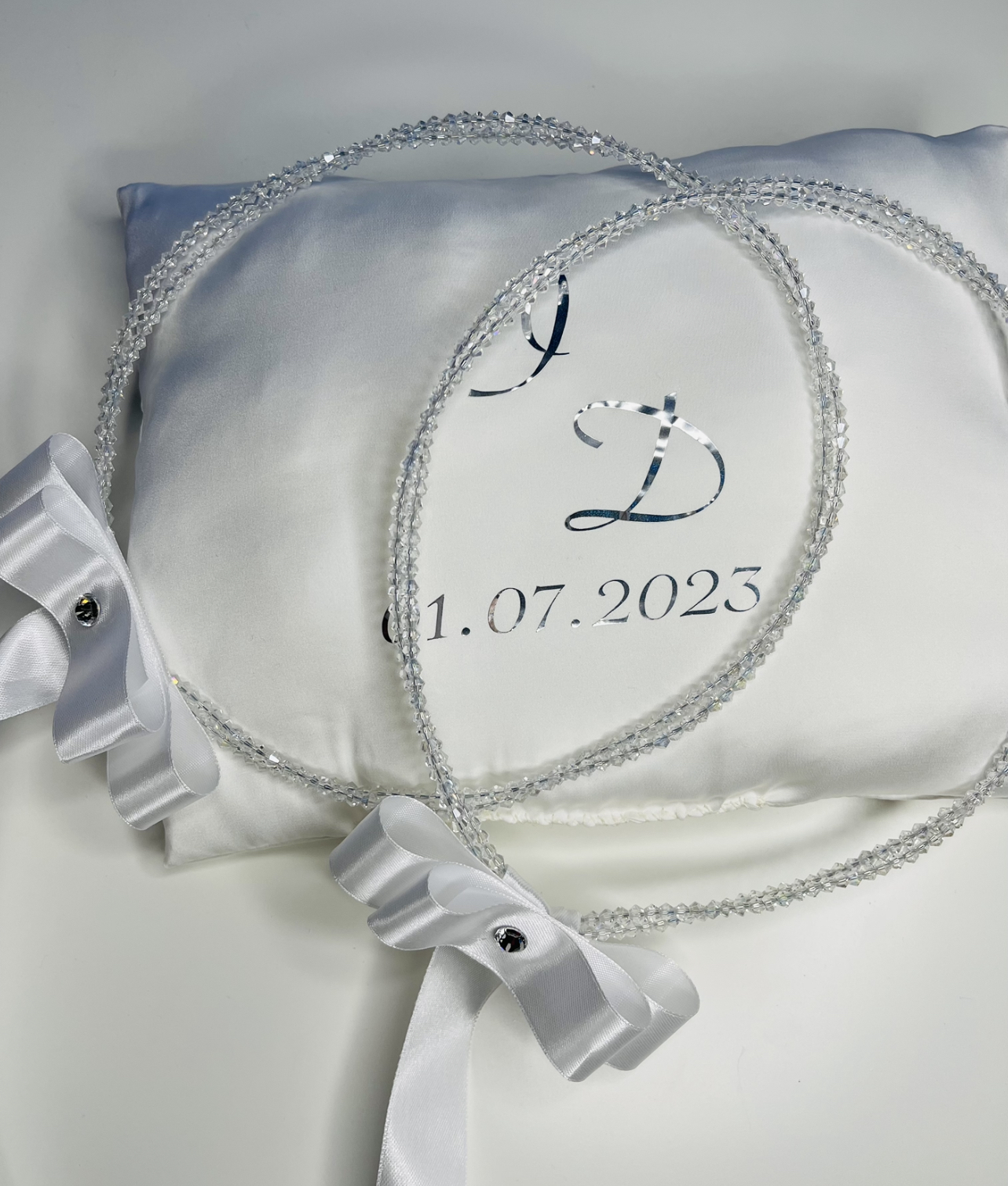 Σατέν μαξιλαράκι για τα στέφανα σε χρώμα λευκό. Διαστάσεις 20*23